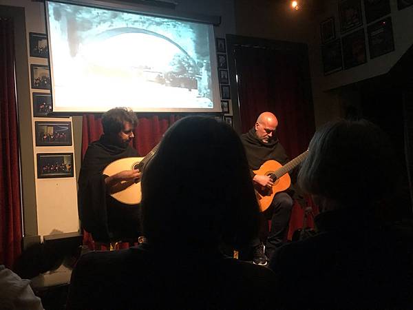 表演內容會闡述fado&Coimbra的故事,他們會用影片、雙語旁白(葡語&英語)來連串整個表演。雖然歌詞都是葡文,整場有豐富的故事、影片配合編排音樂表演,非常有氣氛,但真的不太哀傷XD中間還有段大學生用fado追女孩的故事,整場都哈哈大笑~